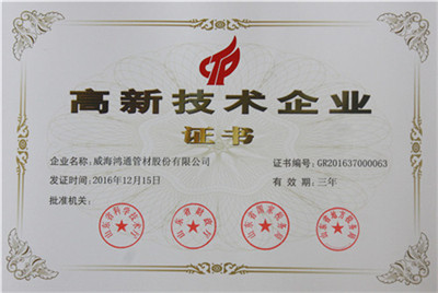 鴻通管材擁有“山東省院士工作站”、“山東省高性能纖維增強非金屬復(fù)合管工程技術(shù)研究中心”、“山東省企業(yè)技術(shù)中心”、“威海市綠色油氣采輸技術(shù)重點實驗室”等四個研究開發(fā)平臺,并且與中國石油集團石油管工程技術(shù)研究院、武漢理工大學(xué)、大連理工大學(xué)、中國石油大學(xué)、中國礦業(yè)大學(xué)、中國海洋大學(xué)等所屬國家重點實驗室建立了產(chǎn)學(xué)研合作體。公司目前擁有專利32項,其中發(fā)明專利7項。